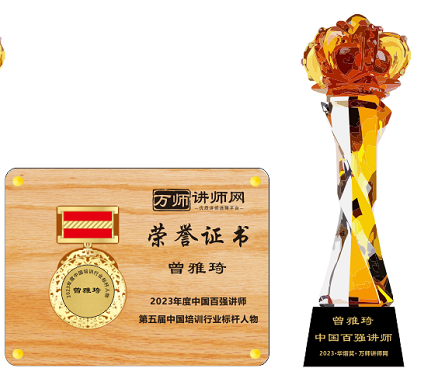 恭喜曾雅琦老師榮獲萬師講師網(wǎng)2023年度中國百強(qiáng)講師 暨第五屆中國培訓(xùn)行業(yè)標(biāo)桿人物