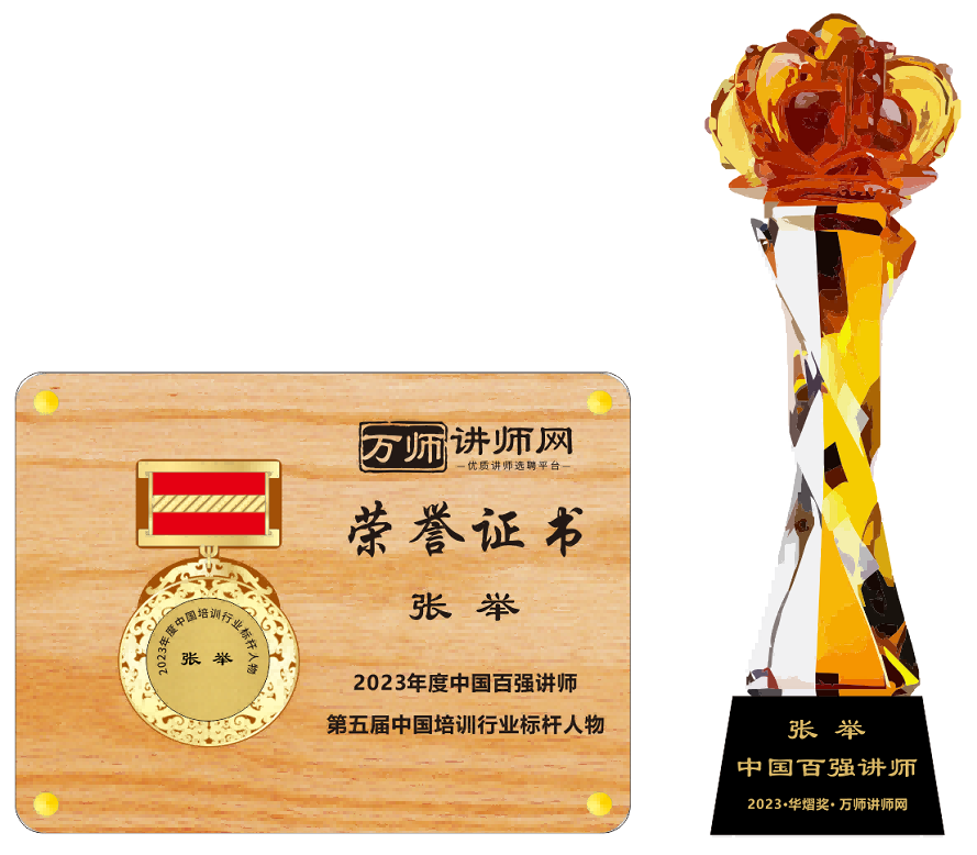 恭喜張舉老師榮獲萬師講師網2023年度中國百強講師 暨第五屆中國培訓行業標桿人物