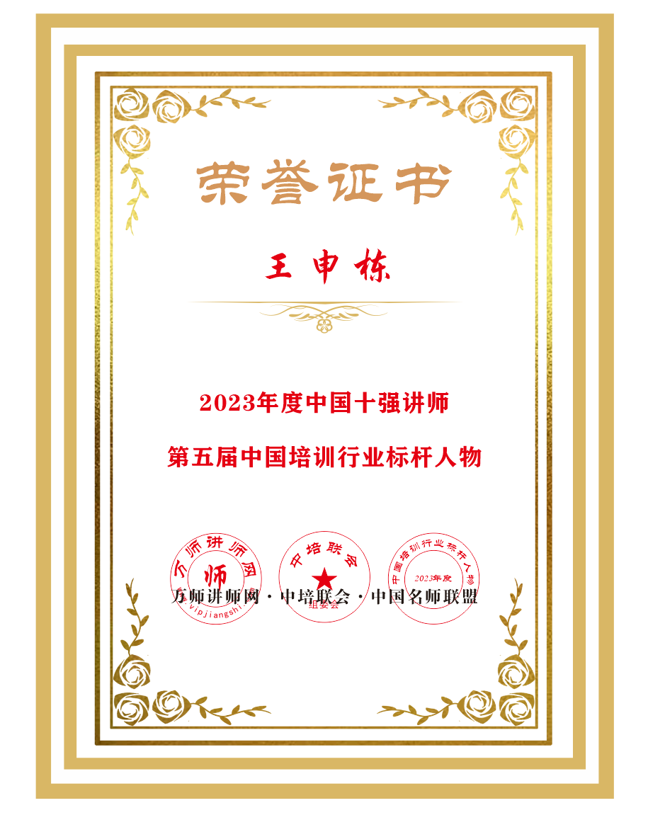 恭喜王申棟老師榮獲萬師講師網2023年度中國十強講師 暨第五屆中國培訓行業標桿人物