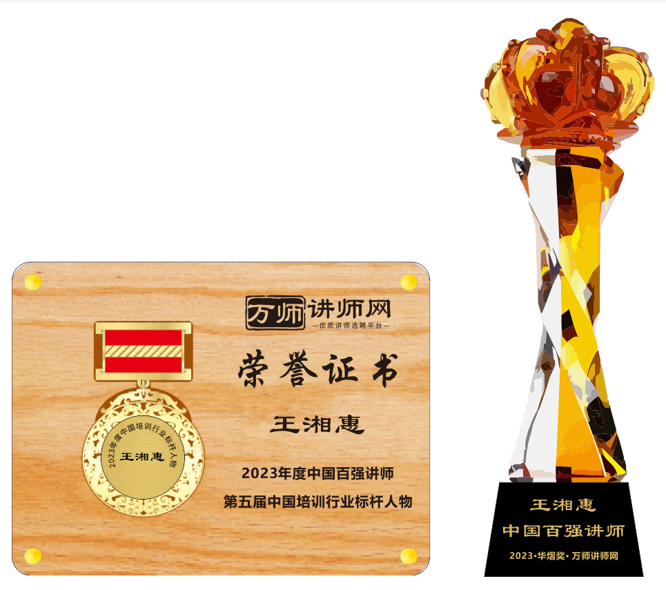 恭喜王湘惠榮獲萬師講師網2023年度中國百強講師 暨第五屆中國培訓行業標桿人物
