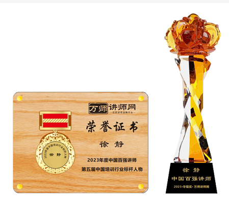 恭喜徐靜獲萬師講師網(wǎng)2023年度中國百強講師 暨第五屆中國培訓(xùn)行業(yè)標(biāo)桿人物