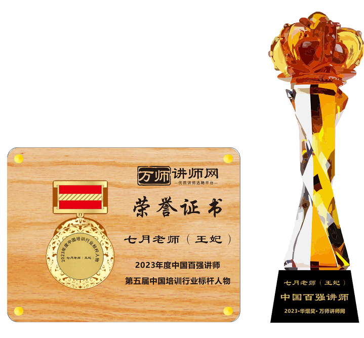 恭喜七月老師(王妃)獲萬師講師網2023年度中國百強講師 暨第五屆中國培訓行業標桿人物