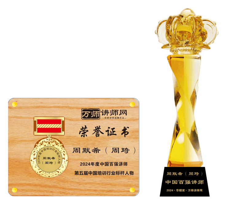恭喜周默希(周琦)獲萬師講師網2024年度中國百強講師 暨第五屆中國培訓行業標桿人物
