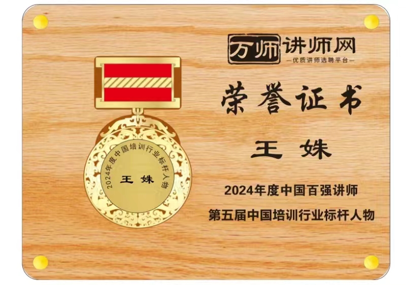 恭喜王姝獲萬師講師網2024年度中國百強講師 暨第五屆中國培訓行業(yè)標桿人物