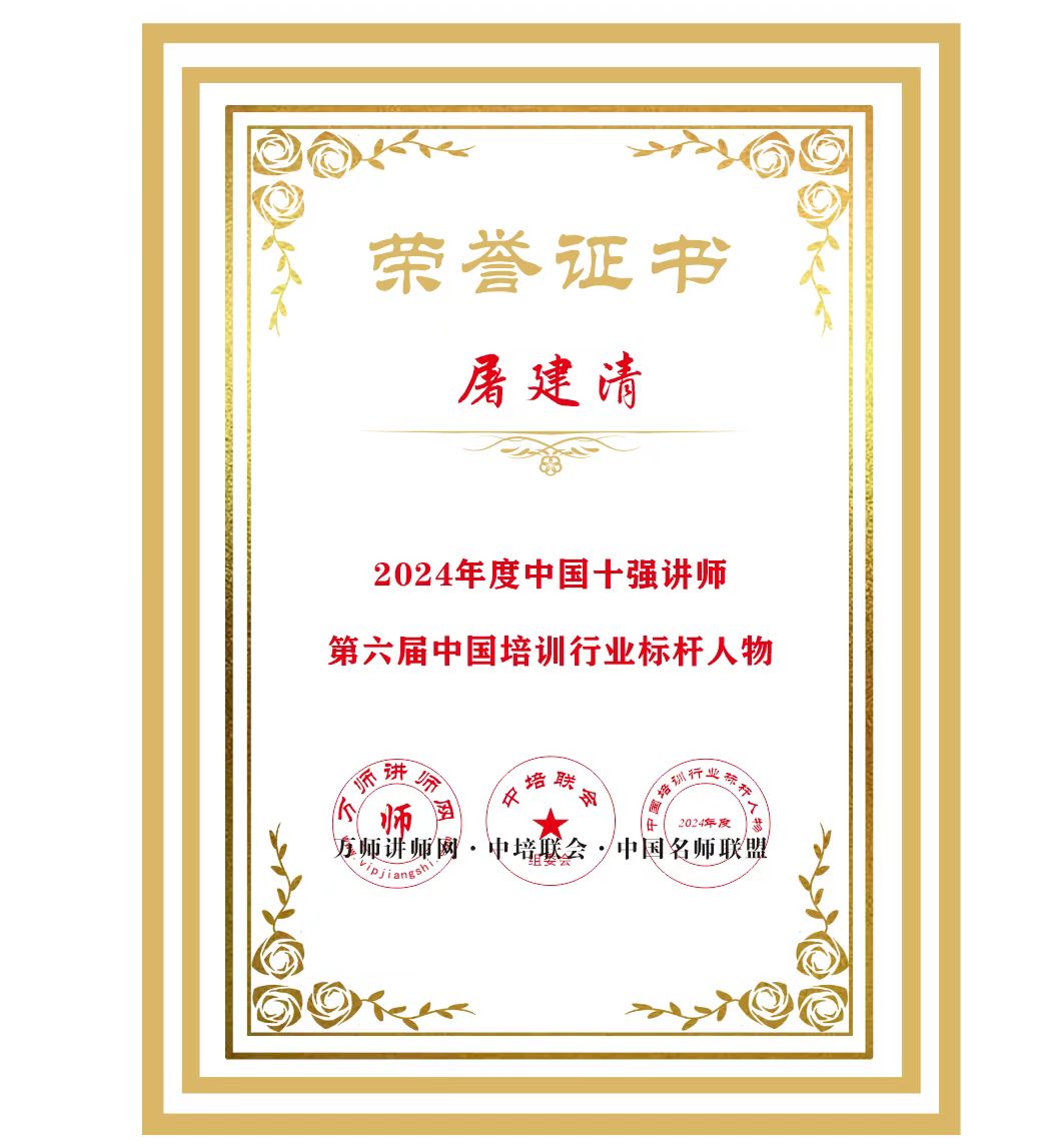 恭喜屠建清老師 榮獲2024年度中國十強講師暨第六屆中國培訓行業標桿人物