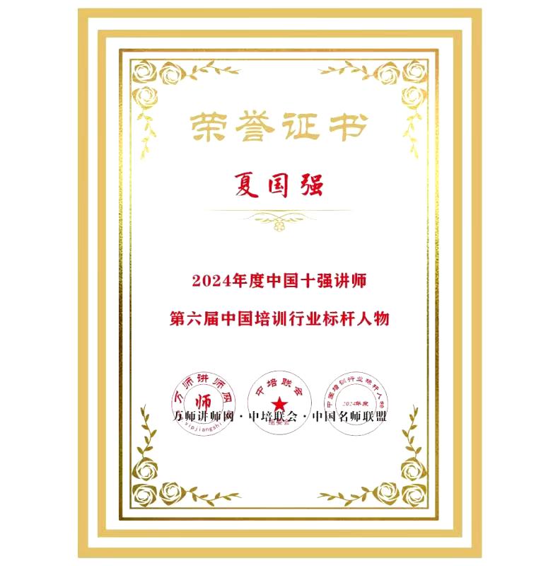 恭喜夏國強老師榮獲萬師講師網2024年度中國十強講師暨第六屆中國培訓行業標桿人物
