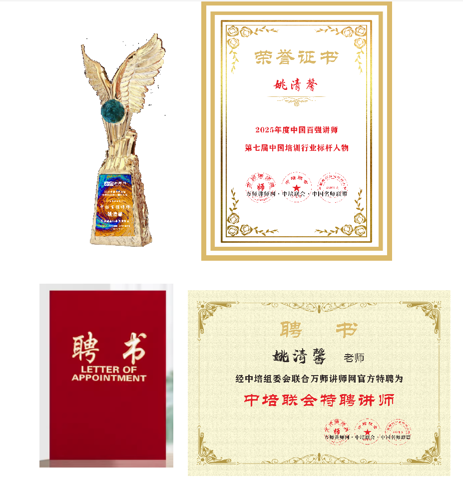 恭喜姚清馨老師獲萬師講師網2025年度中國百強講師暨第七屆中國培訓行業標桿人物