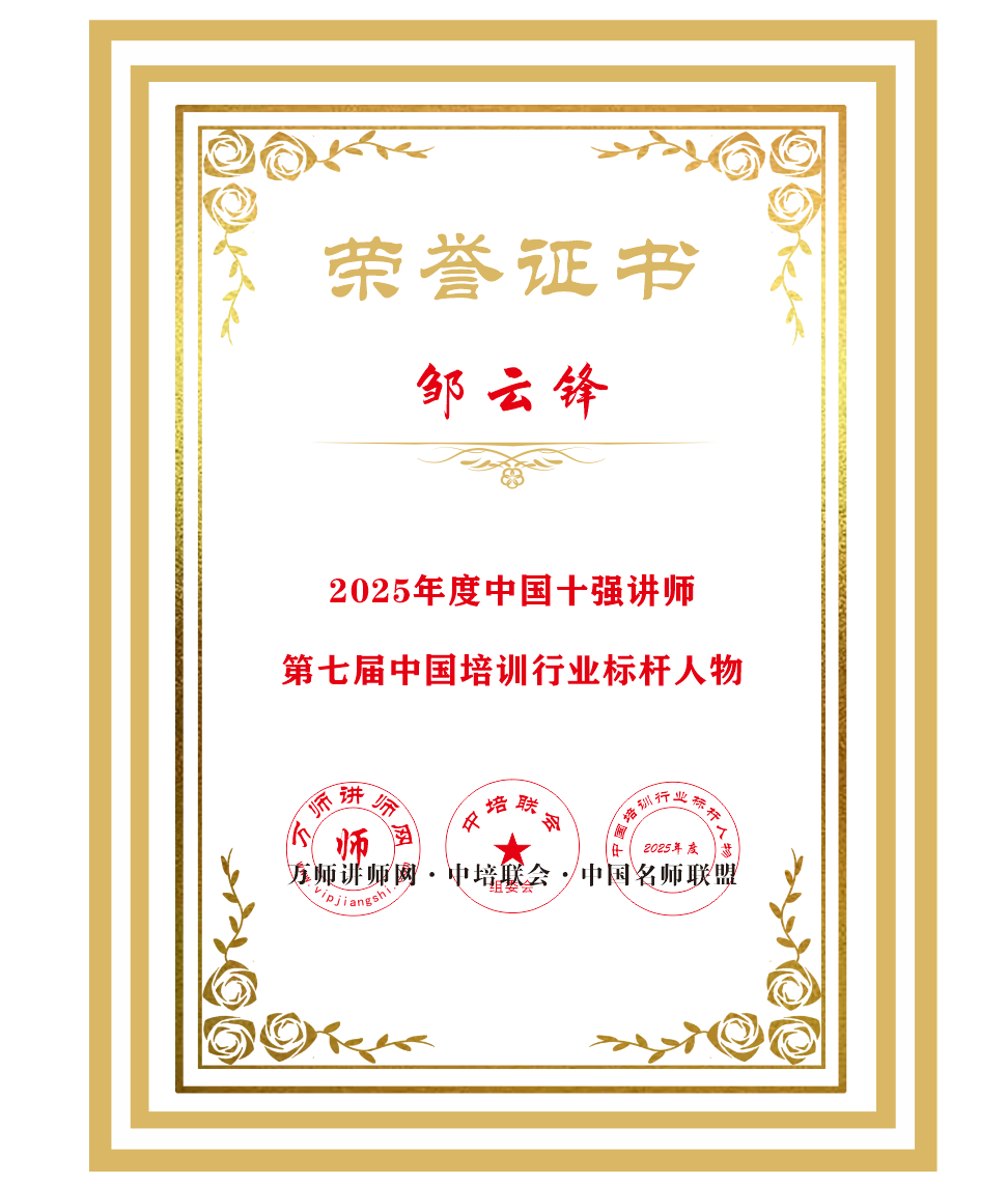 恭喜鄒云鋒老師獲萬師講師網2025年度中國十強講師暨第七屆中國培訓行業標桿人物