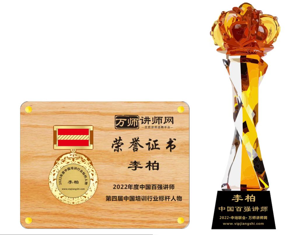 恭李柏老師榮獲2022年度中國百強講師 暨第四屆中國培訓行業標桿人物
