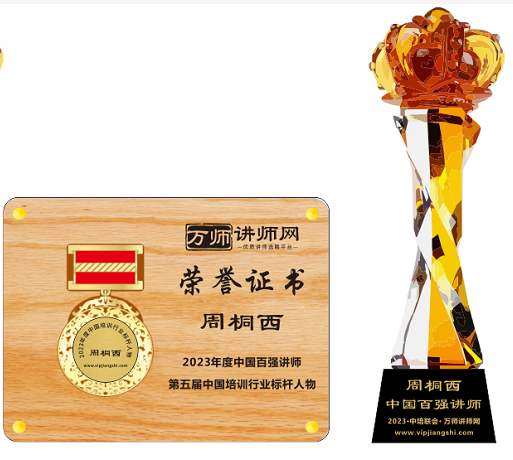 恭喜周桐西老師榮獲萬師講師網2023年度中國百強講師 暨第五屆中國培訓行業標桿人物