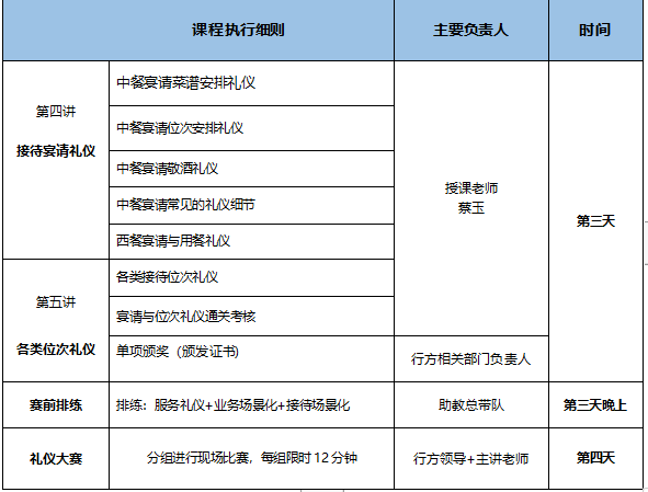 銀行禮儀大賽輔導課程安排如下: