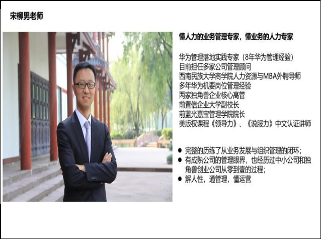 • 宋柳男華為管理落地實踐專家;前置信企業大學副校長